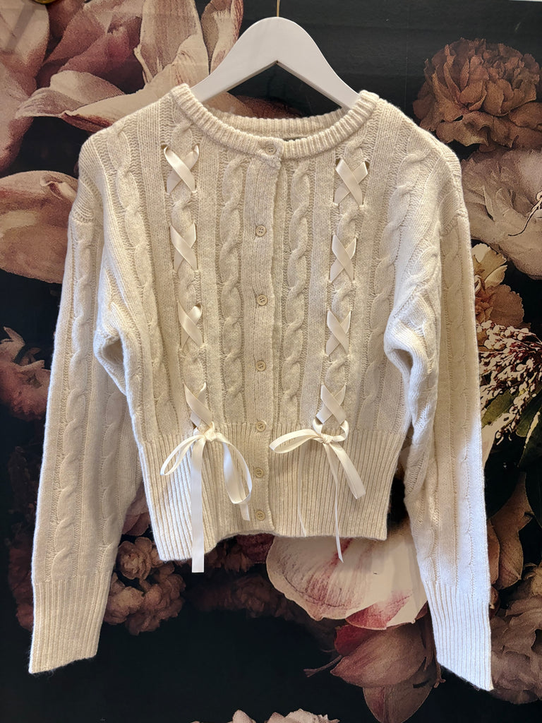 Sleek halter top with stone studded bows. Keyhole cutouts down the front. Button at the top back.
